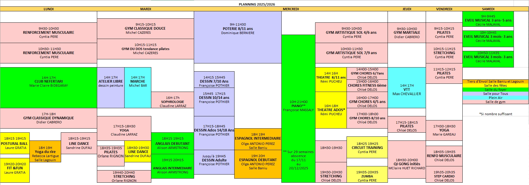 Et le Calendrier des activités qui indique les périodes d’activité de la nouvelle saison